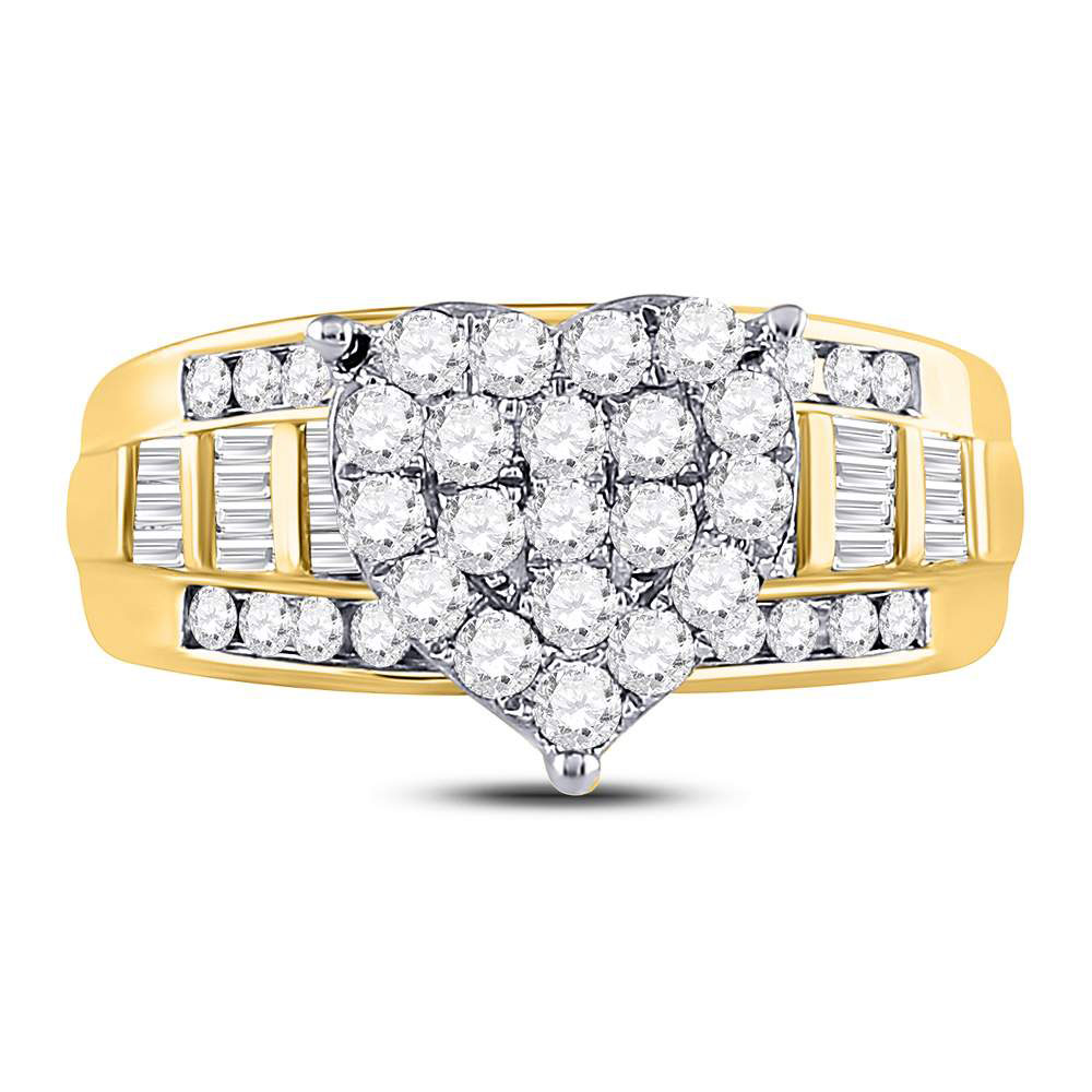 • 10kt Yellow Gold Womens Round Diamond Heart Cluster Bridal Wedding Engagement Ring 1.00 Cttw