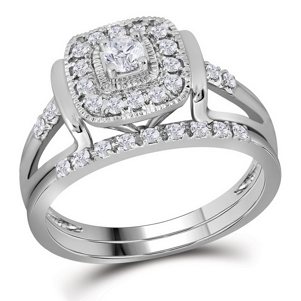 10kt White Gold Womens Round Diamond Square Bridal Wedding Engagement Ring Band Set 1/3 Cttw