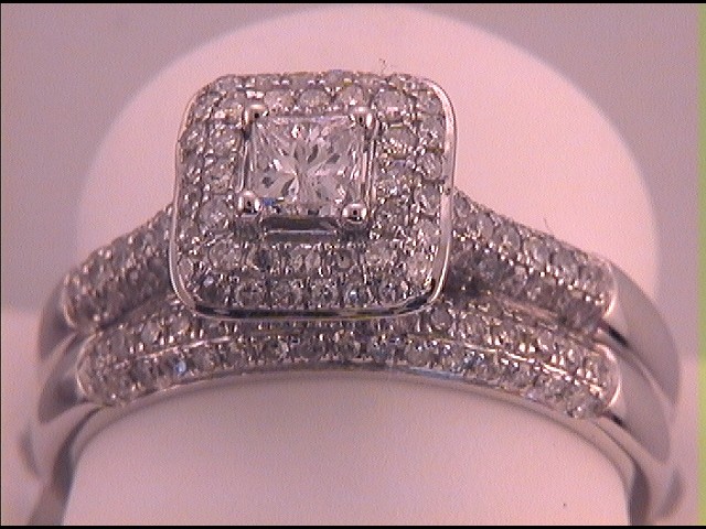 10kt White Gold Womens Princess Diamond Halo Bridal Wedding Engagement Ring Band Set 1.00 Cttw