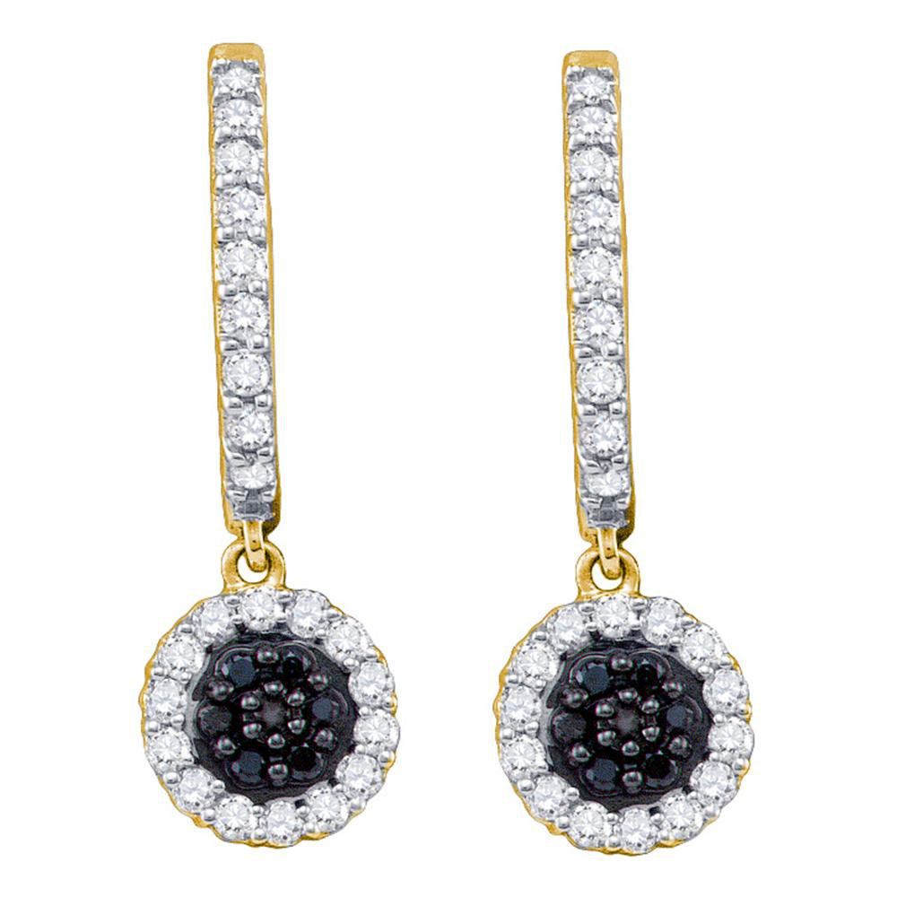 • 10k Yellow Gold Black Color Enhanced Diamond Womens Hoop Flower Cluster Dangle Earrings 1/2 Cttw