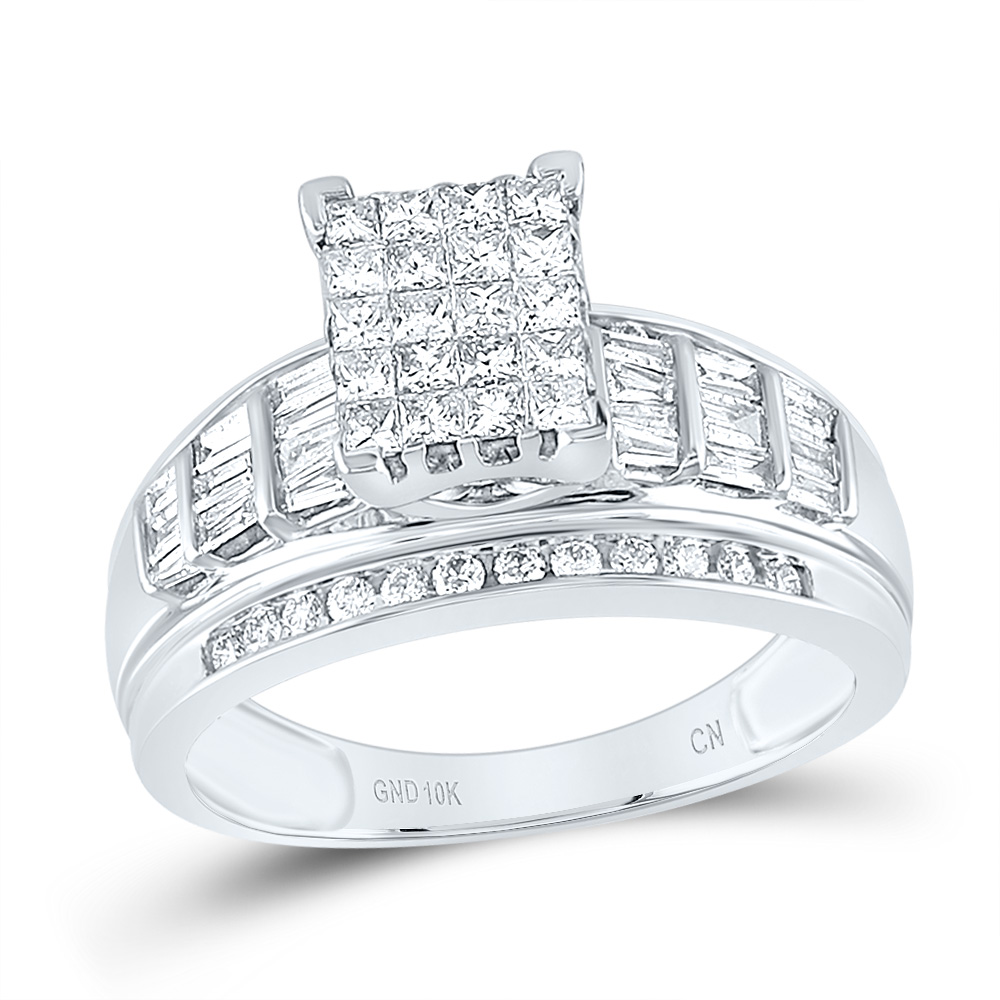 10kt White Gold Womens Princess Diamond Cluster Bridal Wedding Engagement Ring 1.00 Cttw - Size 7.5
