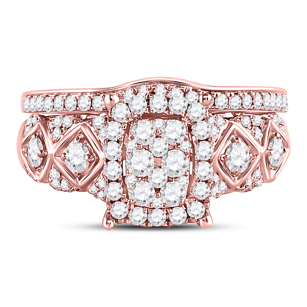 14kt Rose Gold Womens Round Diamond Vintage-inspired Wedding Engagement Ring Band Set 1.00 Cttw