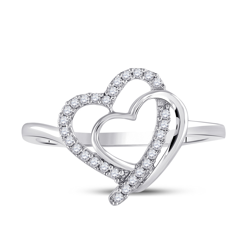 Sterling Silver Womens Round Diamond Double Joined Heartss Love Ring 1/6 Cttw