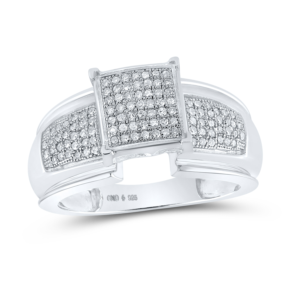 Sterling Silver Womens Diamond Elevated Square Cluster Bridal Wedding Engagement Ring 1/3 Cttw