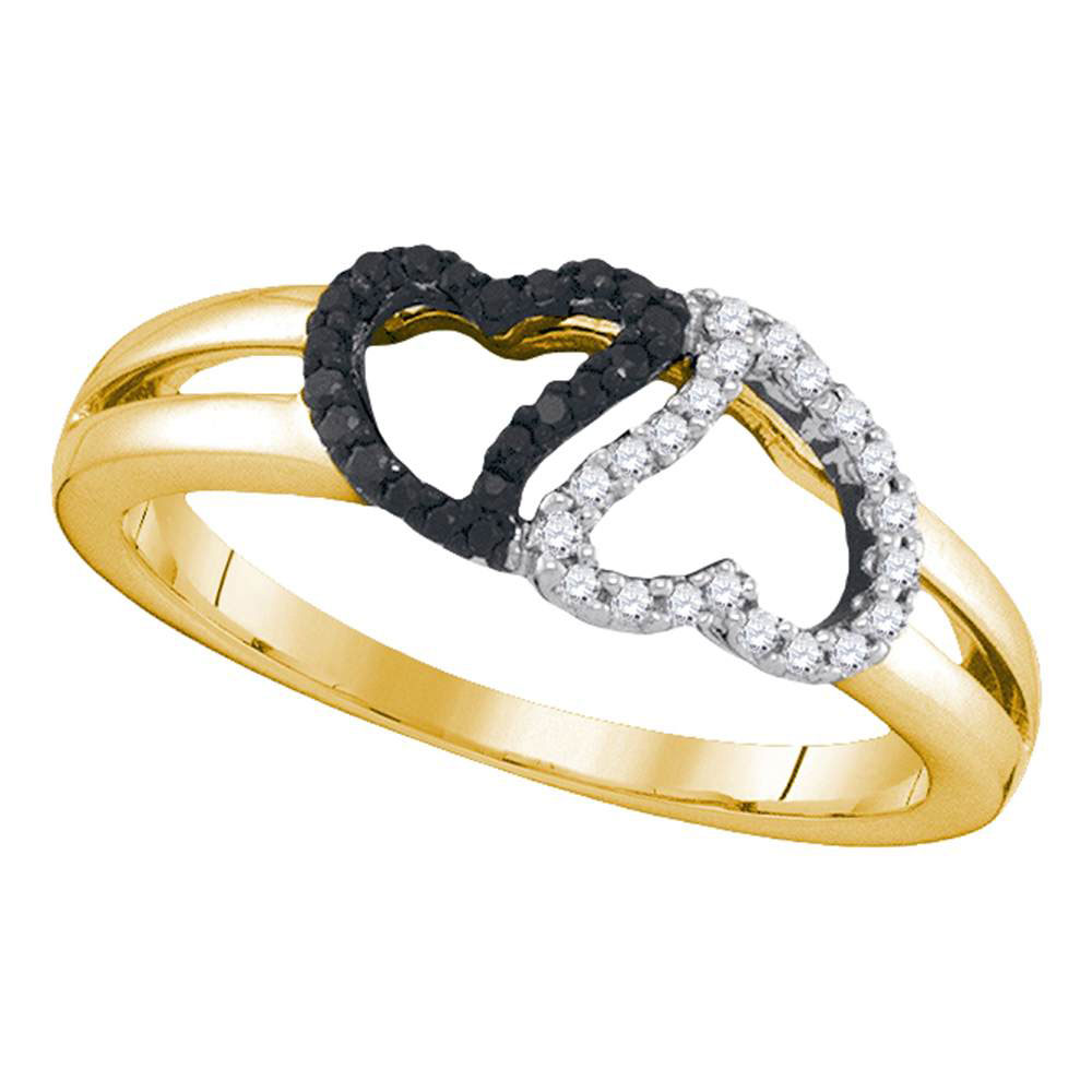 10kt Yellow Gold Womens Round Black Color Enhanced Diamond Heart Ring 1/6 Cttw