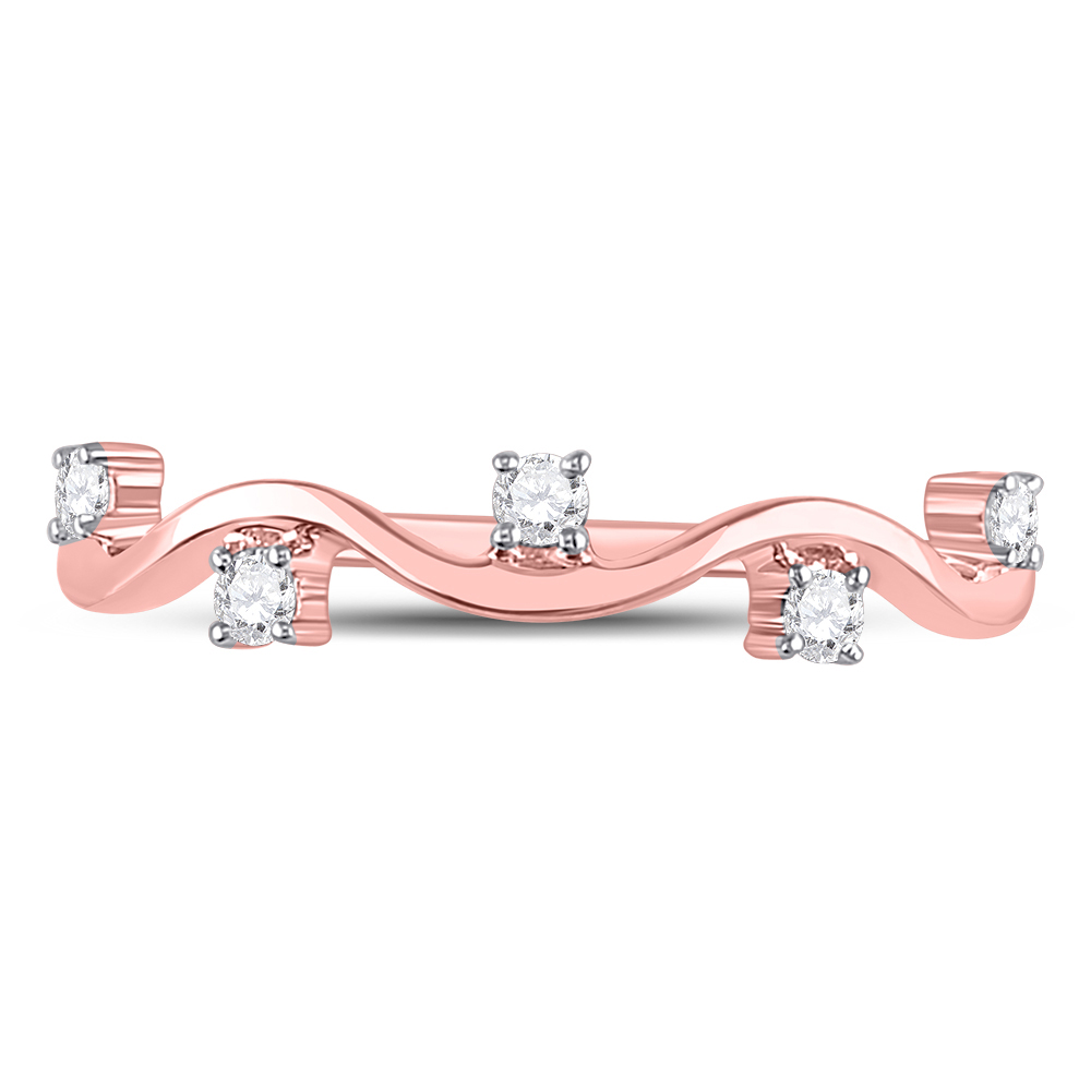 10kt Rose Gold Womens Round Diamond Wave Stackable Band Ring 1/8 Cttw