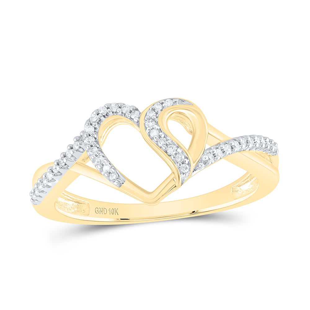10kt Yellow Gold Womens Round Diamond Heart Ring 1/10 Cttw