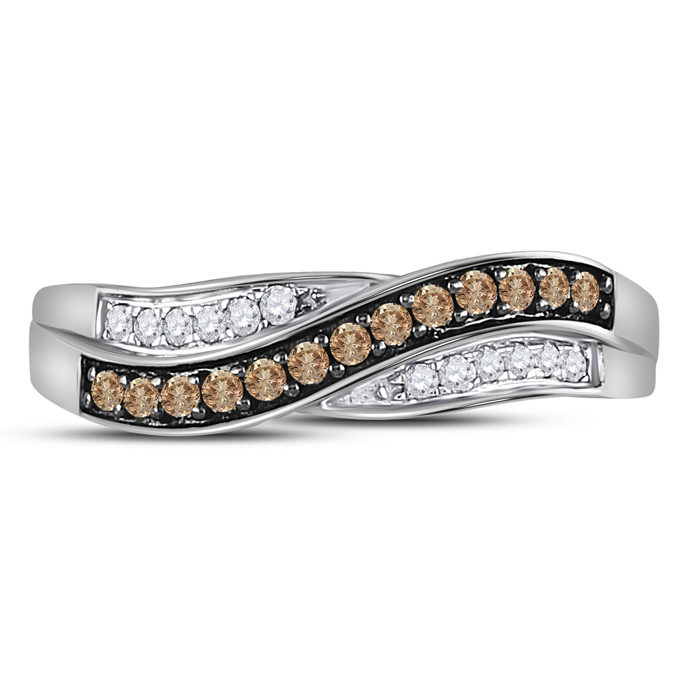 10kt White Gold Womens Round Brown Diamond Band Ring 1/4 Cttw
