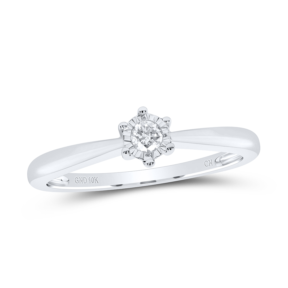 10kt White Gold Womens Round Diamond Solitaire Bridal Wedding Engagement Ring 1/12 Cttw