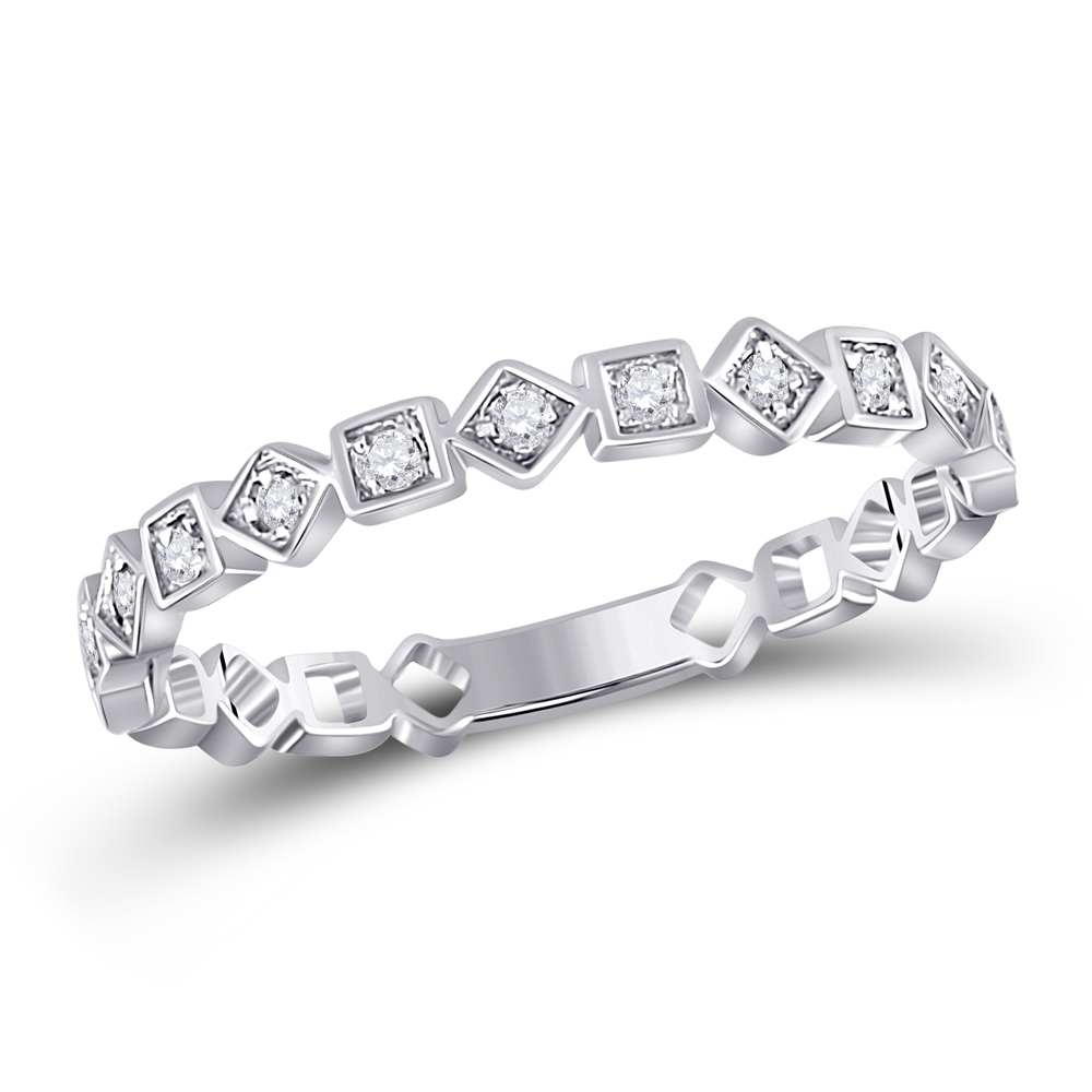 10kt White Gold Womens Round Diamond Squares Stackable Band Ring 1/10 Cttw