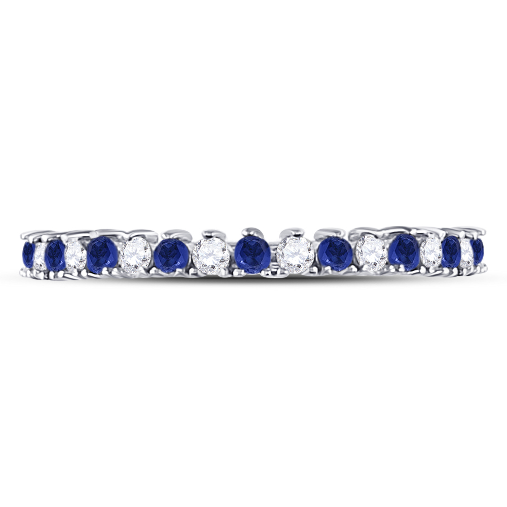 10kt White Gold Womens Round Blue Sapphire Modern Alternating Stackable Band Ring 1/5 Cttw