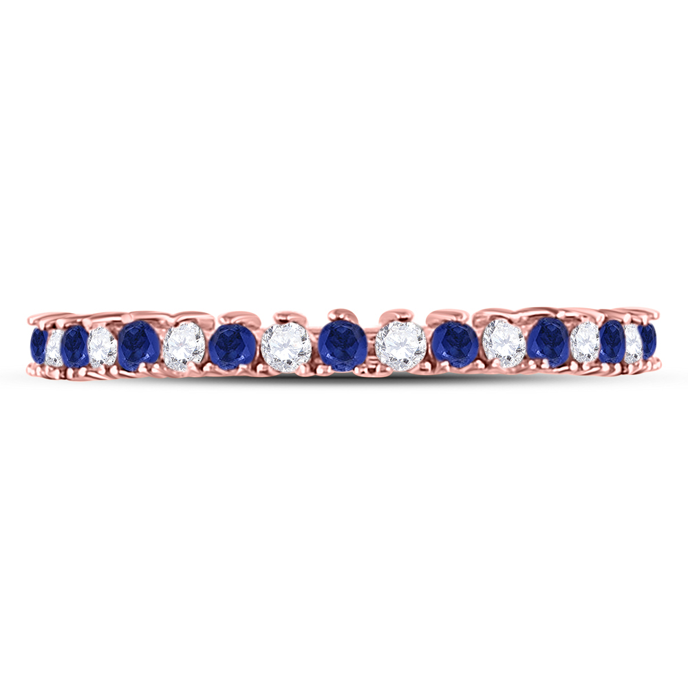 10kt Rose Gold Womens Round Blue Sapphire Modern Alternating Stackable Band Ring 1/5 Cttw