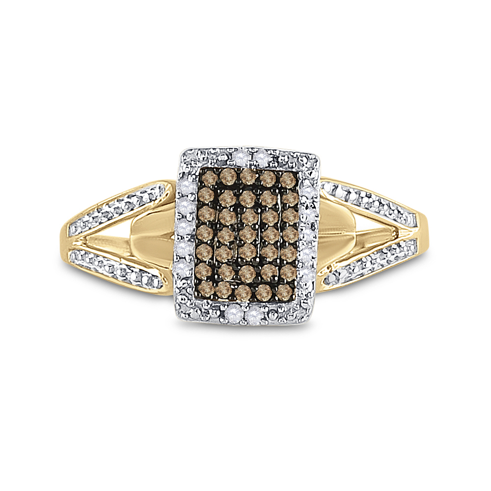 10kt Yellow Gold Womens Round Brown Diamond Cluster Ring 1/6 Cttw