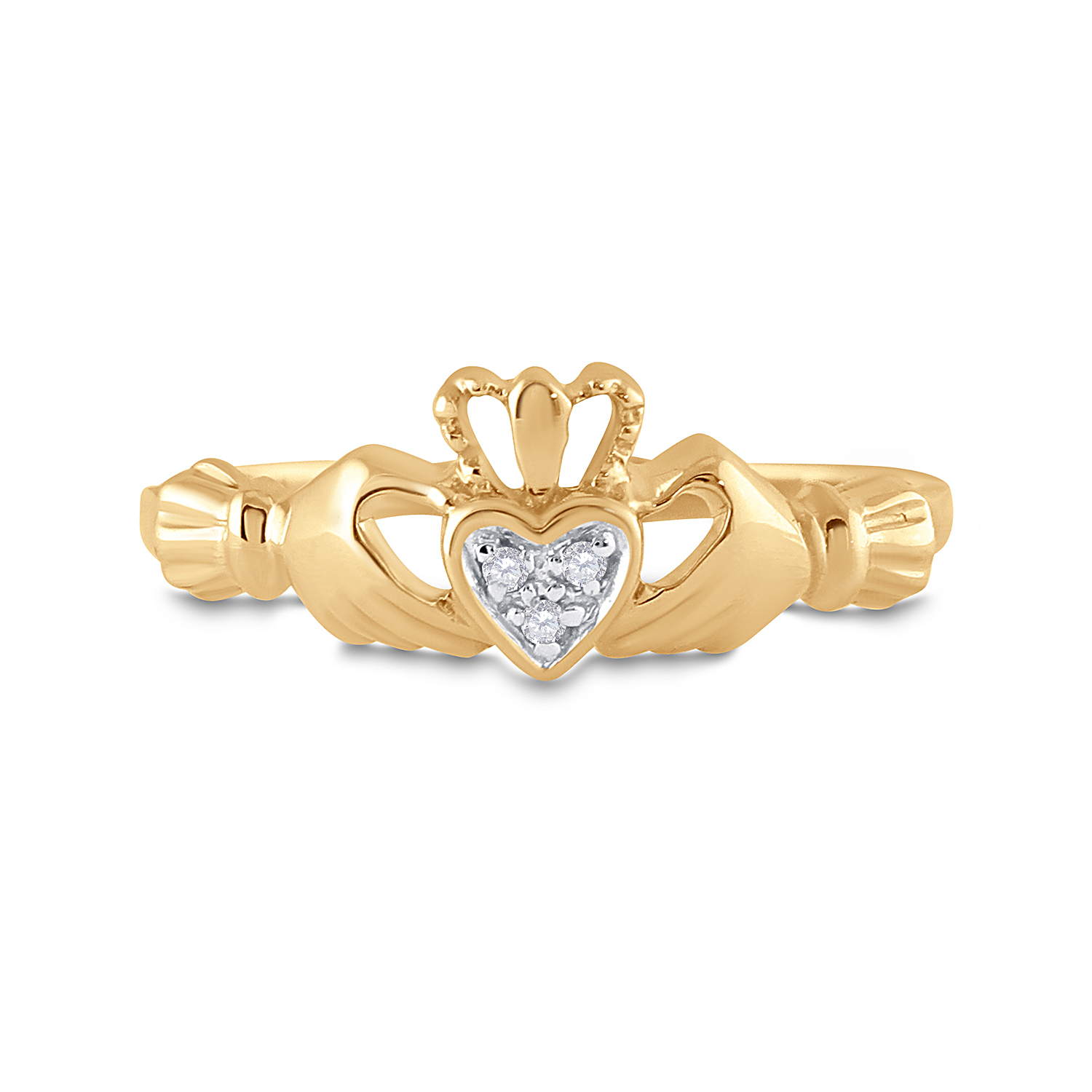 10kt Yellow Gold Womens Round Diamond Claddagh Heart Ring .02 Cttw