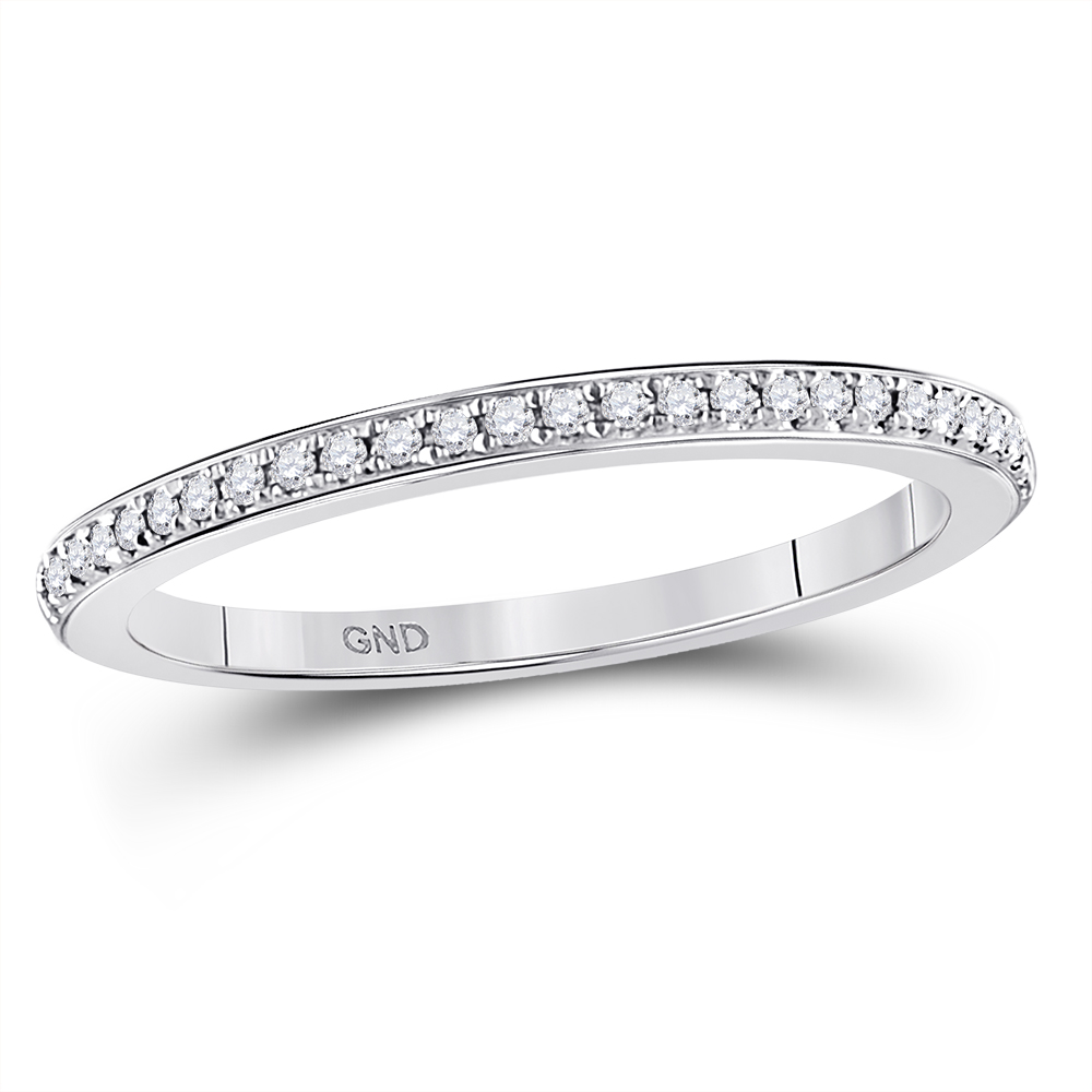 10kt White Gold Womens Round Diamond Single Row Stackable Band Ring 1/8 Cttw