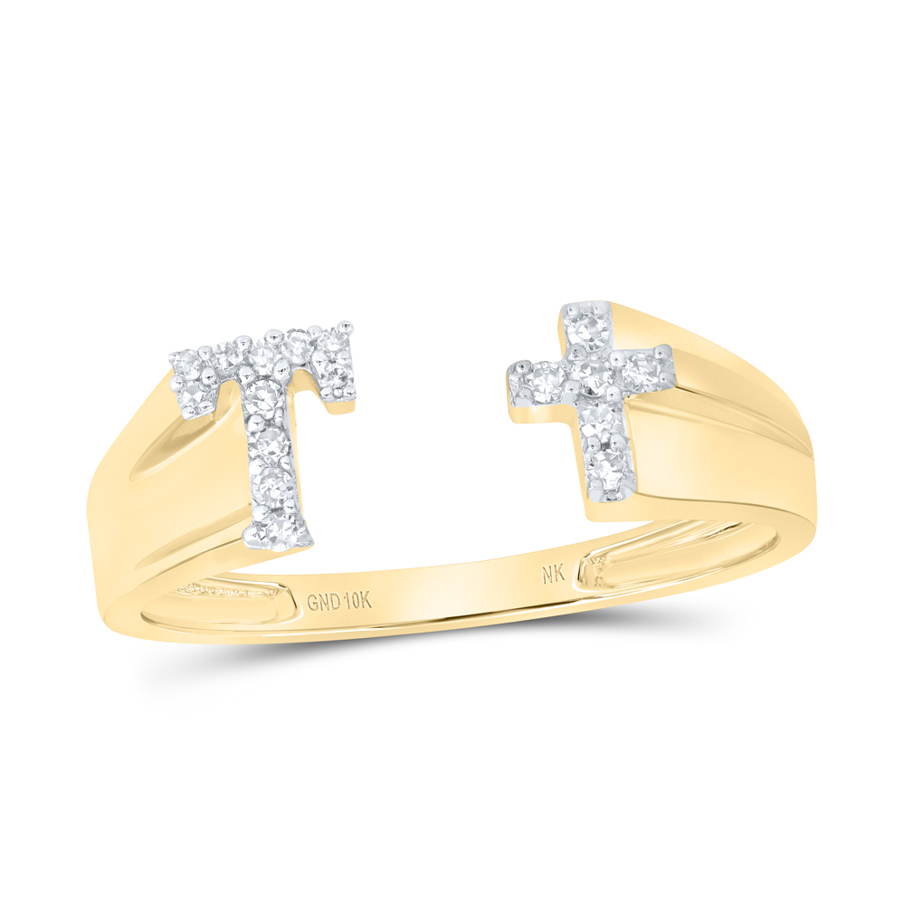 1/10CTW-NAT DIA NK GIFT INITIAL "T" LADIES CROSS RING