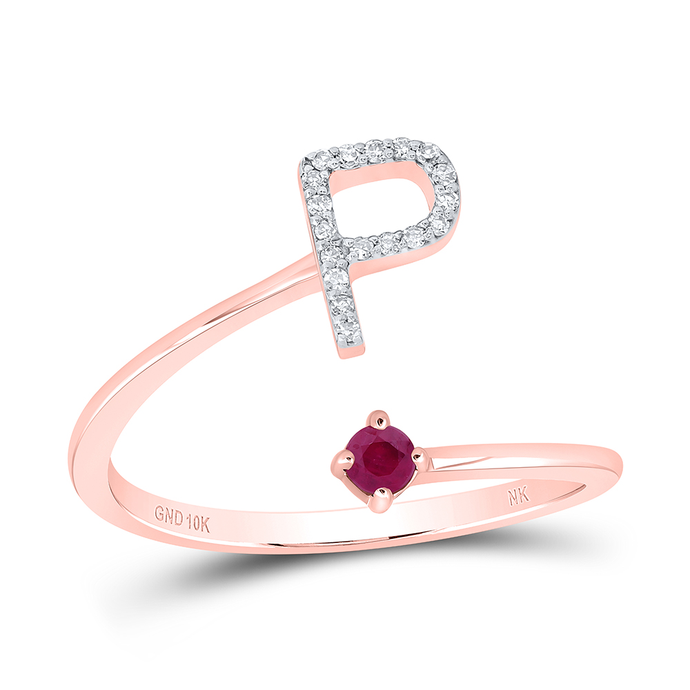 1/12CTW-NAT DIA NK 2.5MM RD-RU NAT GEM INITIAL "P" LADIES RING