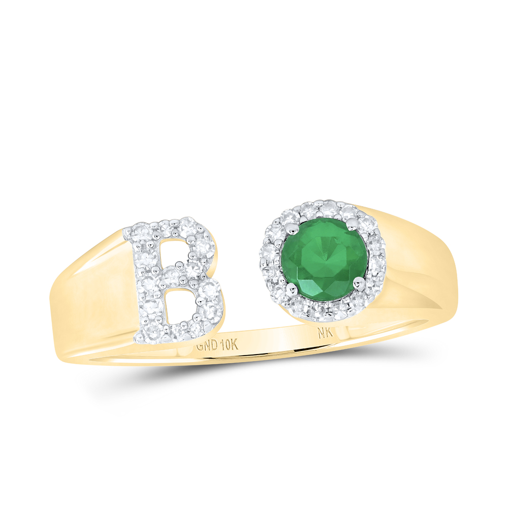 1/8CTW-DIA NK 4 MM RD-EM SYNTHETIC INITIAL "B" LADIES RING