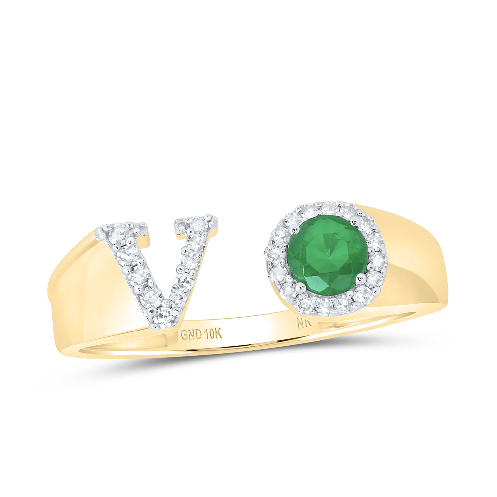 1/8CTW-DIA NK 4 MM RD-EM SYNTHETIC INITIAL "V" LADIES RING