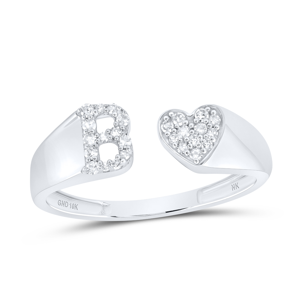 1/8CTW-DIA NK GIFT INITIAL "B" LADIES HEART RING