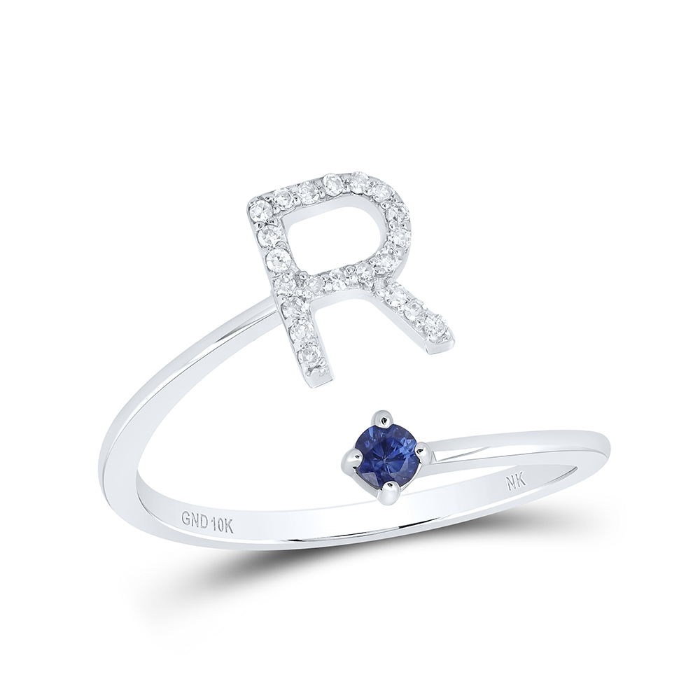 1/10CTW-NAT DIA NK 2.5MM RD-BS NAT GEM INITIAL "R" LADIES RING
