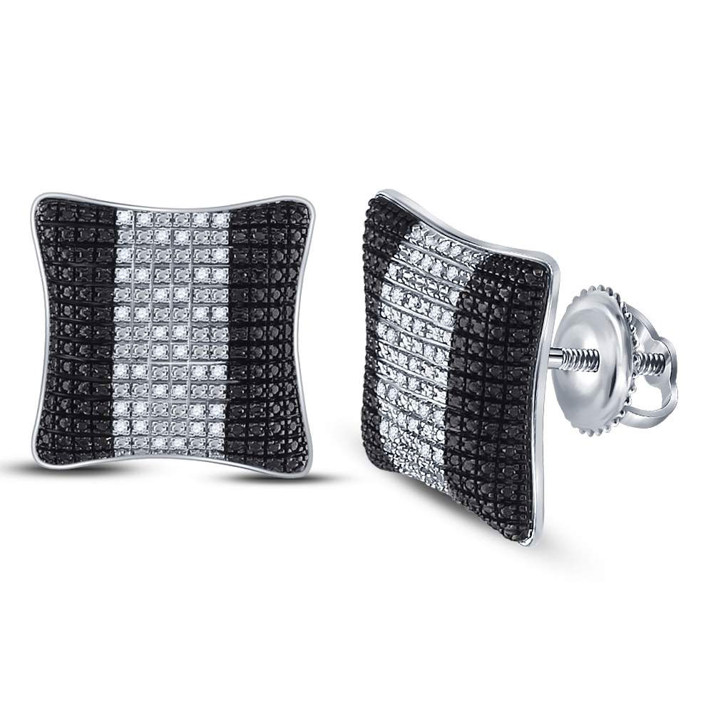 Sterling Silver Mens Round Diamond Puffed Square Cluster Earrings 1/6 Cttw