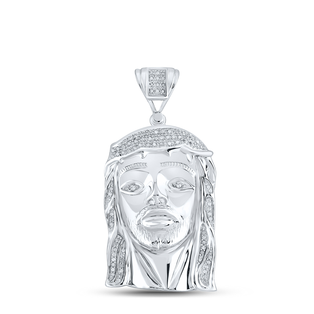 Sterling Silver Mens Round Diamond Jesus Face Charm Pendant 3/8 Cttw
