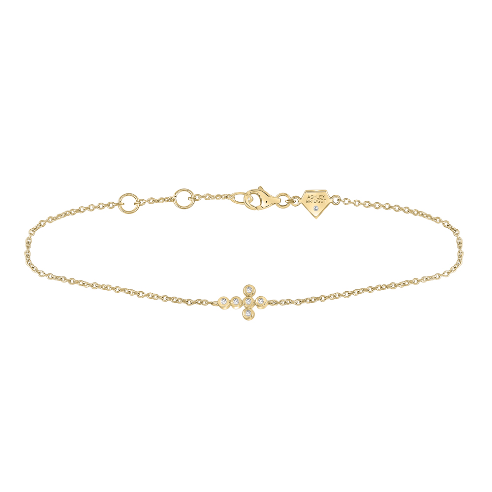 • Yellow-tone Sterling Silver Womens Round Diamond Petite Cross Faith Bracelet 1/20 Cttw