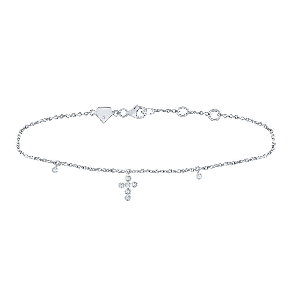 Sterling Silver Womens Round Diamond Dangle Cross Bracelet 1/10 Cttw