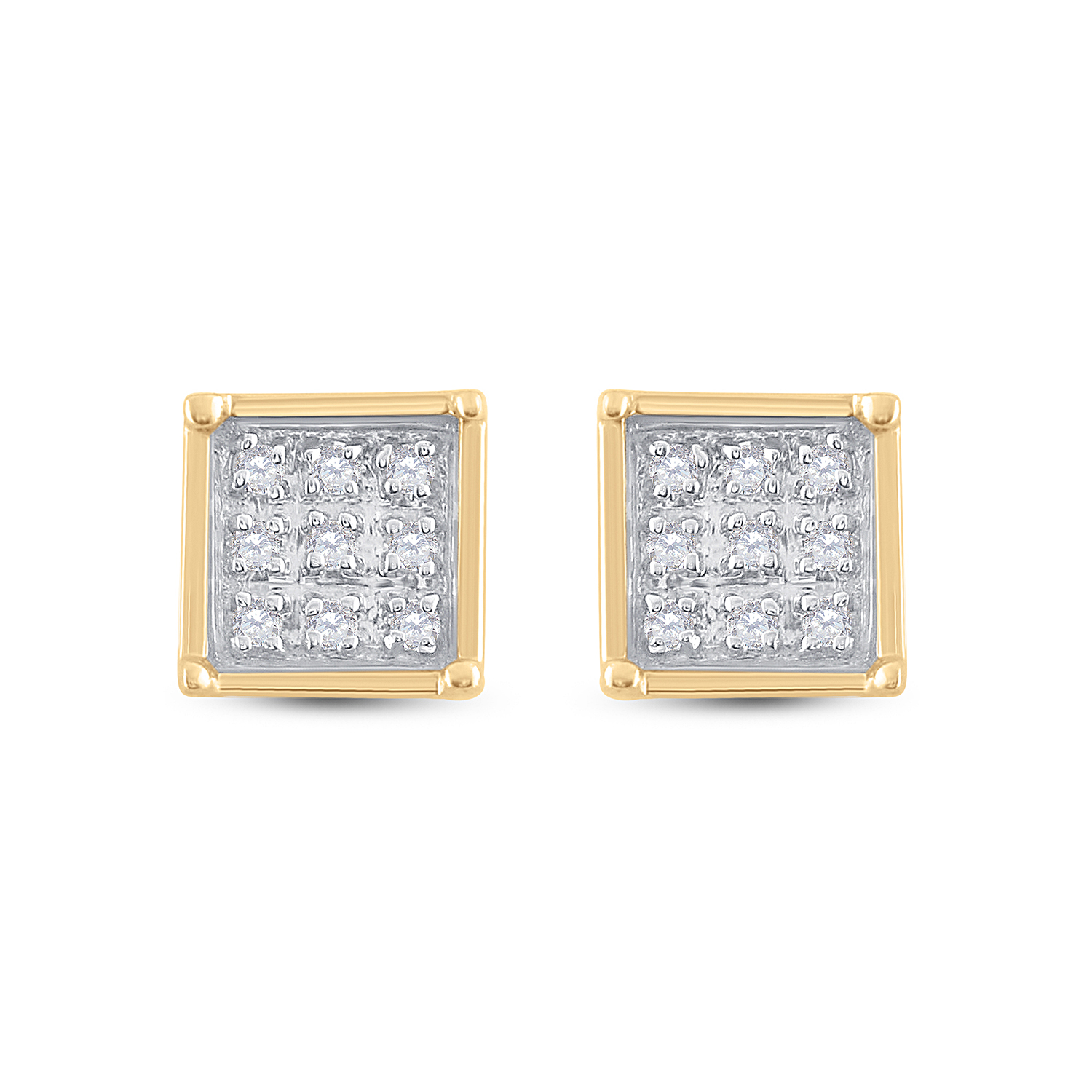 Yellow-tone Sterling Silver Womens Round Diamond Cluster Earrings 1/20 Cttw