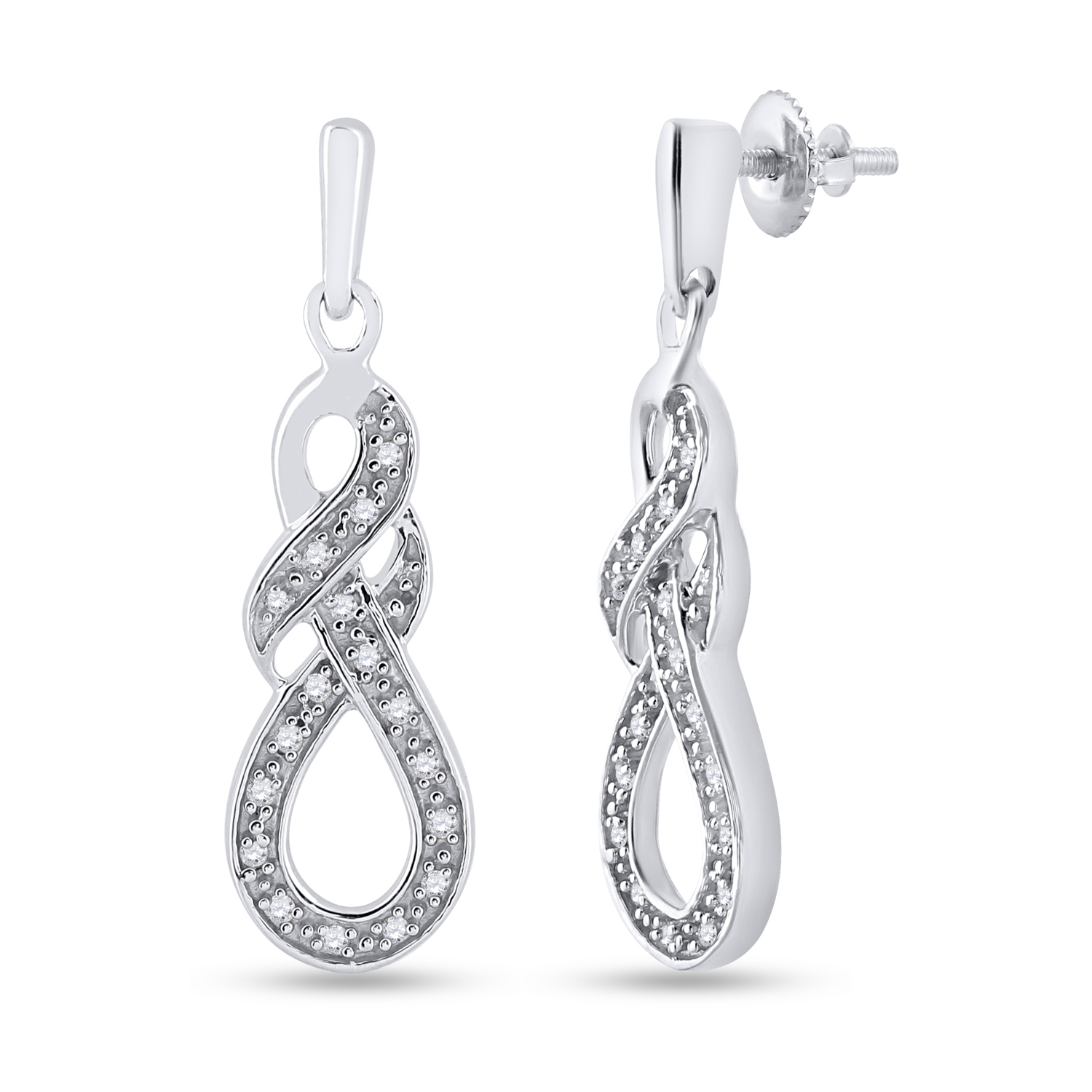 Sterling Silver Womens Round Diamond Infinity Dangle Screwback Earrings 1/8 Cttw