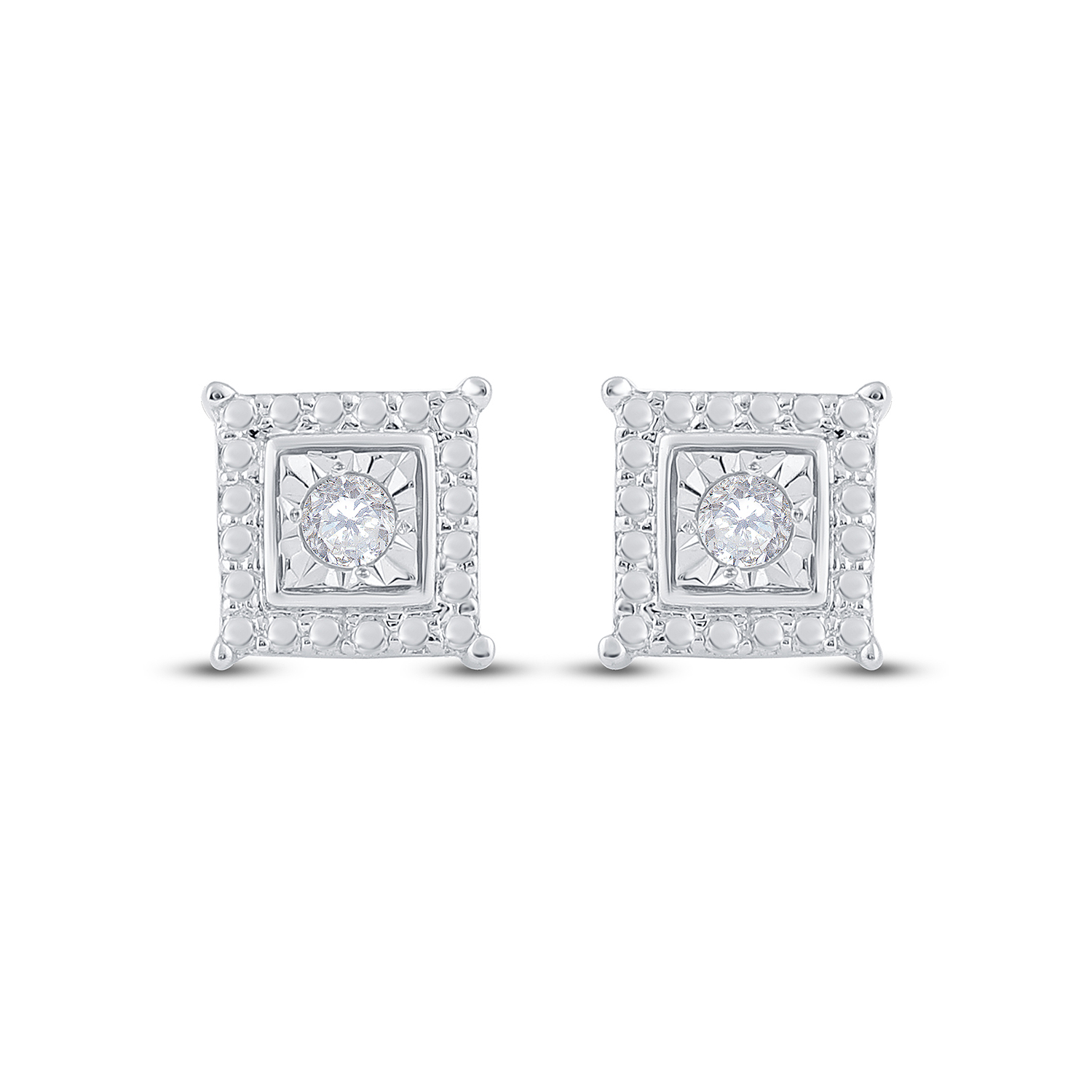 • Sterling Silver Womens Round Diamond Solitaire Square Stud Earrings 1/10 Cttw