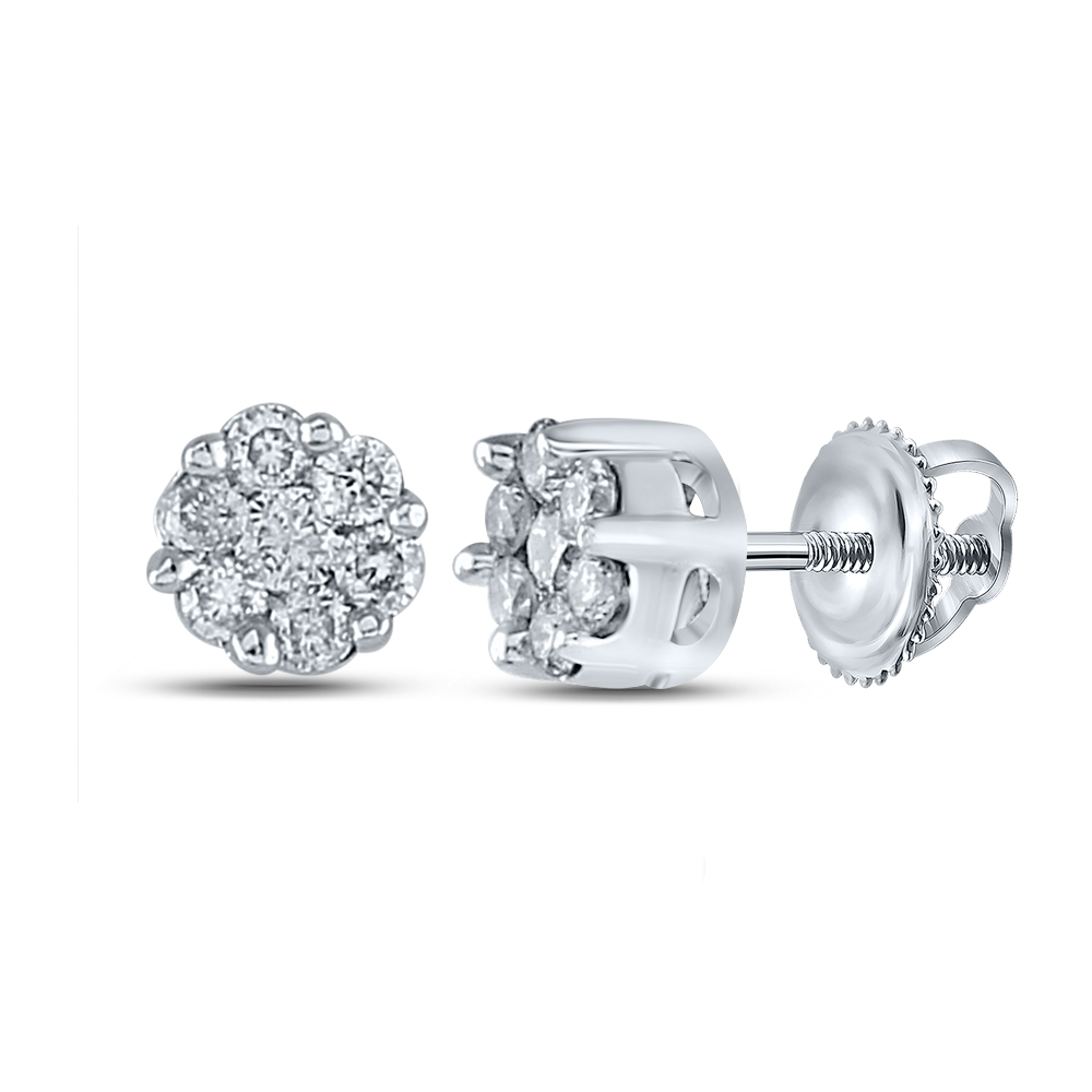 • Sterling Silver Womens Round Diamond Flower Cluster Earrings 1/4 Cttw