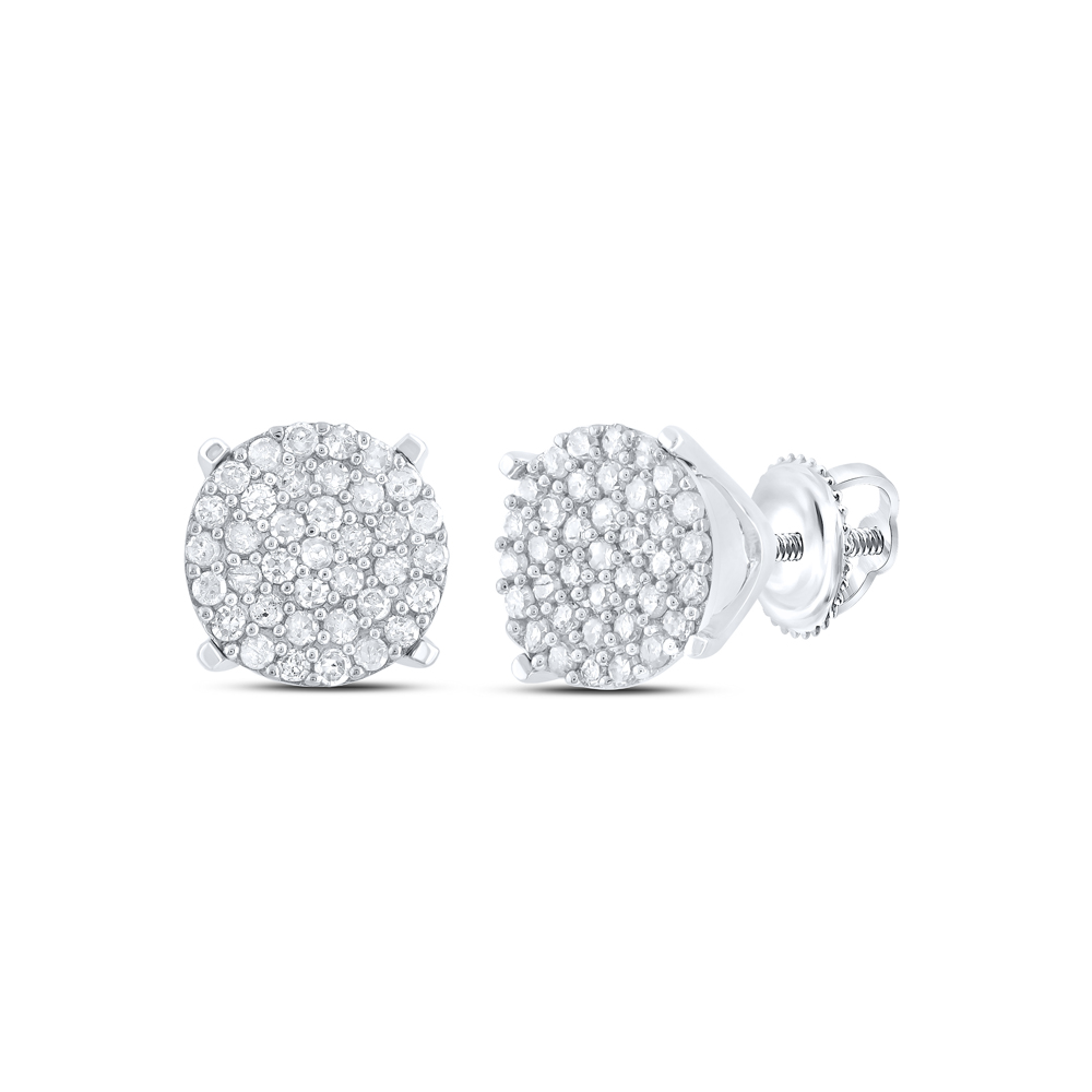 • 10kt White Gold Womens Round Diamond Circle Cluster Stud Earrings 1/4 Cttw