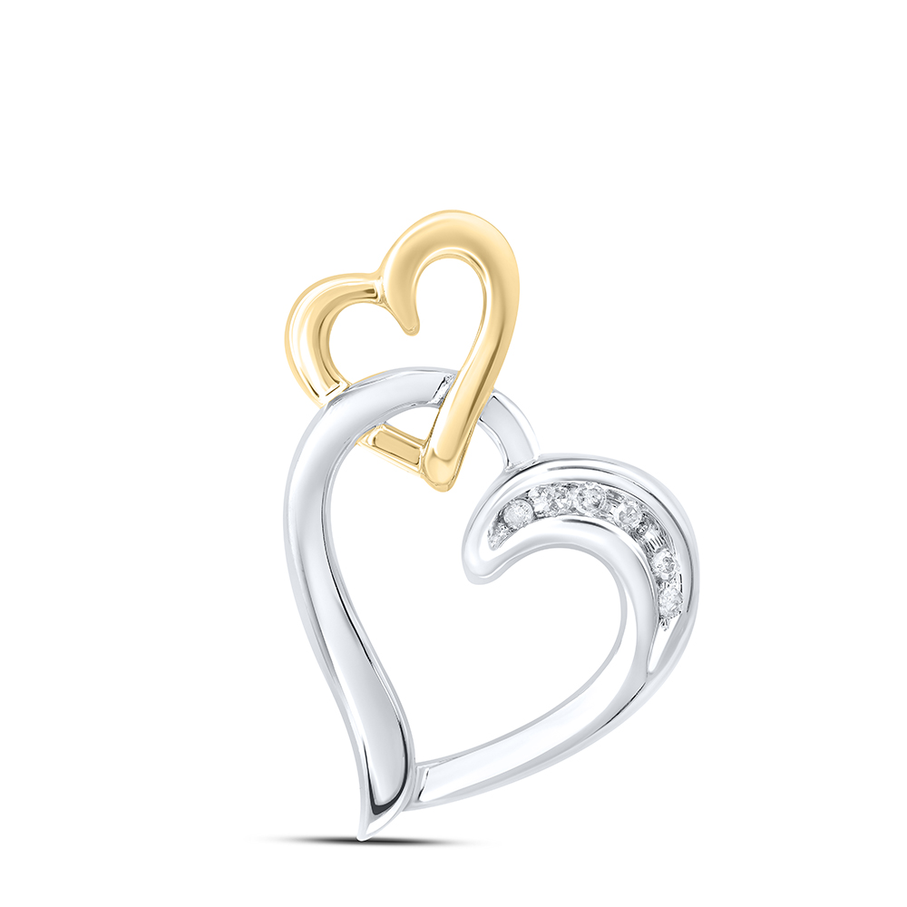Two-tone Sterling Silver Womens Round Diamond Double Heart Pendant .03 Cttw