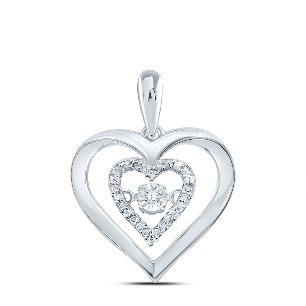 Sterling Silver Womens Round Diamond Moving Heart Pendant .03 Cttw