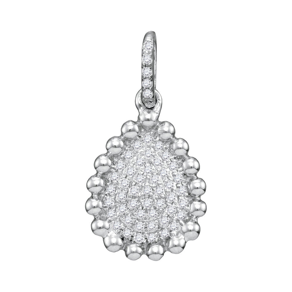 10kt White Gold Womens Round Diamond Cluster Teardrop Pendant 1/12 Cttw