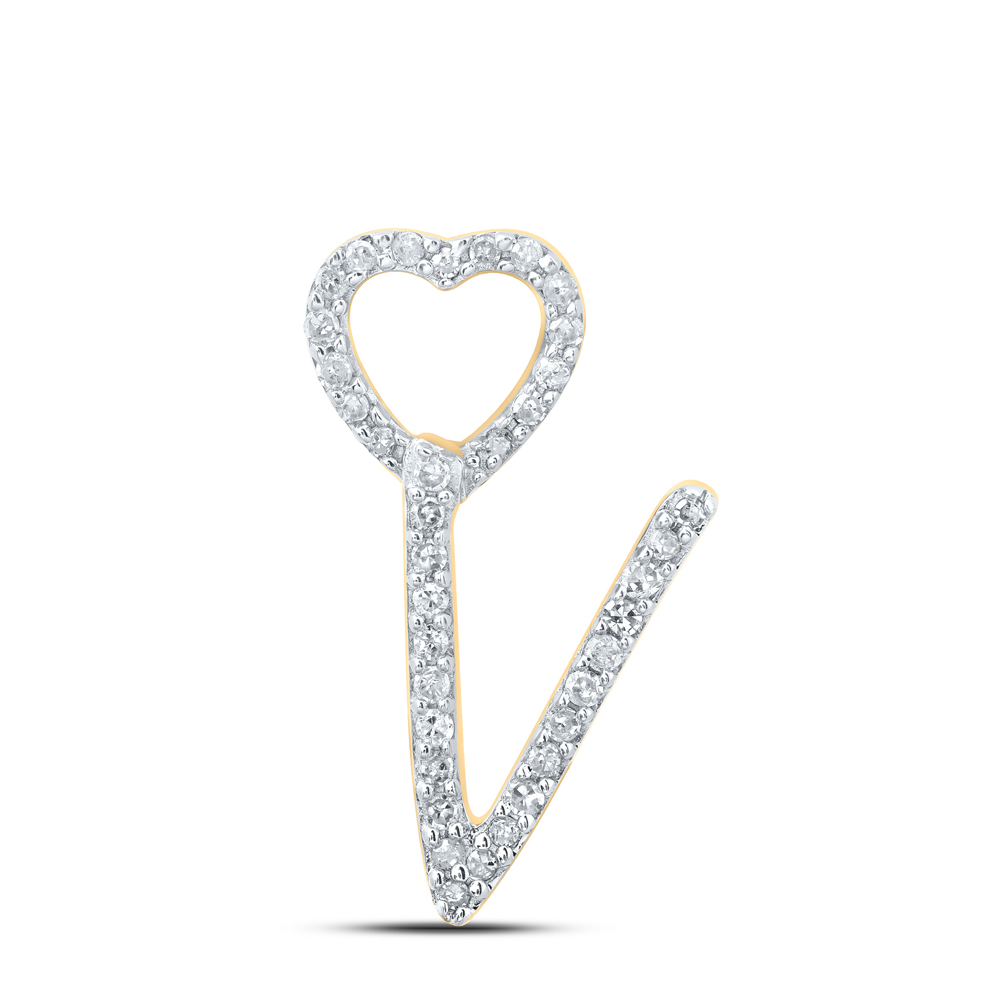1/10CTW-DIA P1P2 GIFT HEART INITIAL "V" PENDANT