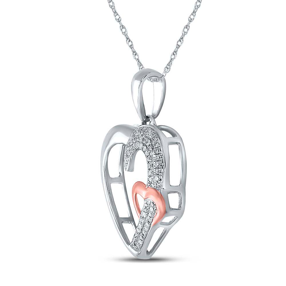 Sterling Silver Womens Round Diamond 2-tone Heart Pendant 1/6 Cttw