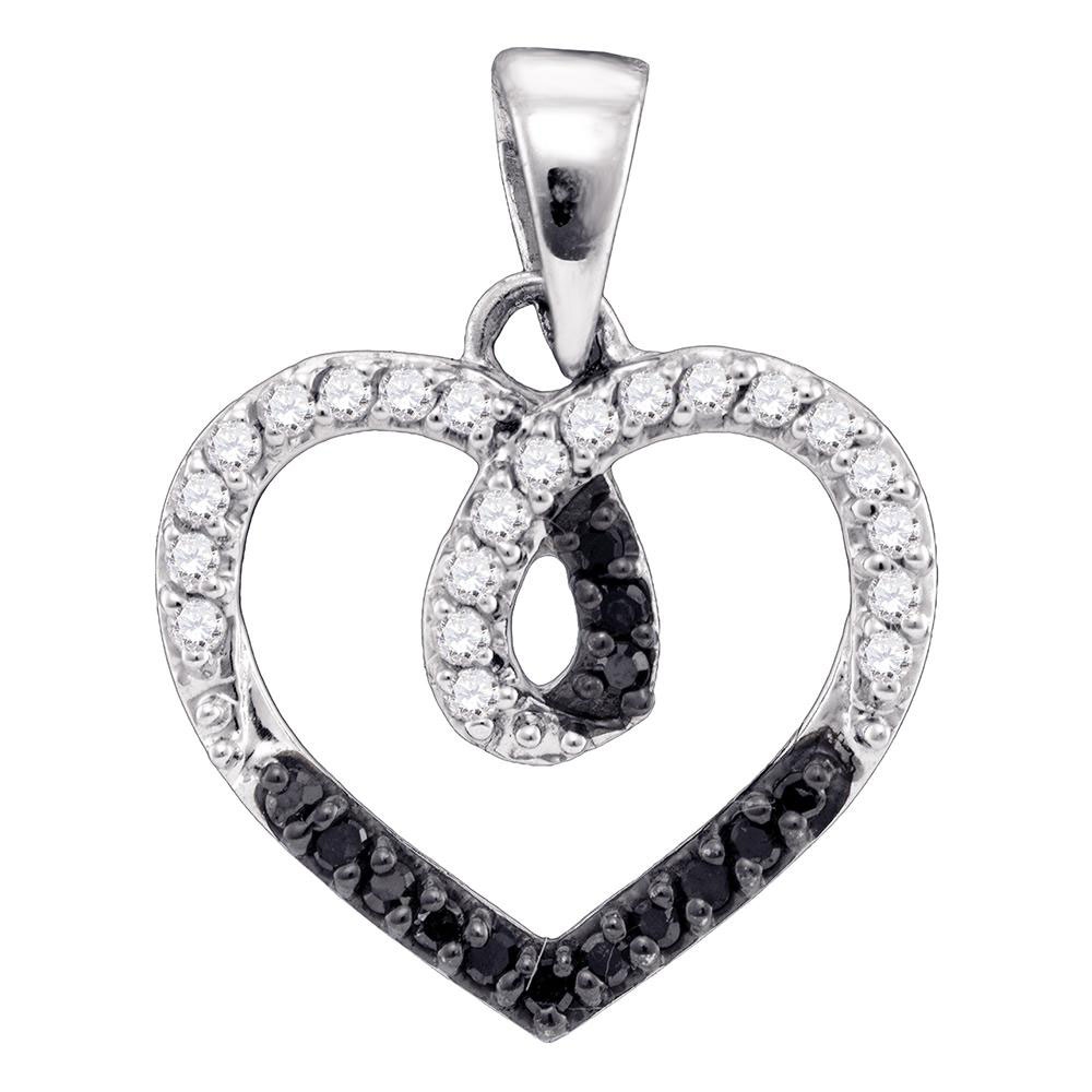 • Sterling Silver Womens Round Black Color Enhanced Diamond Small Heart Pendant 1/4 Cttw