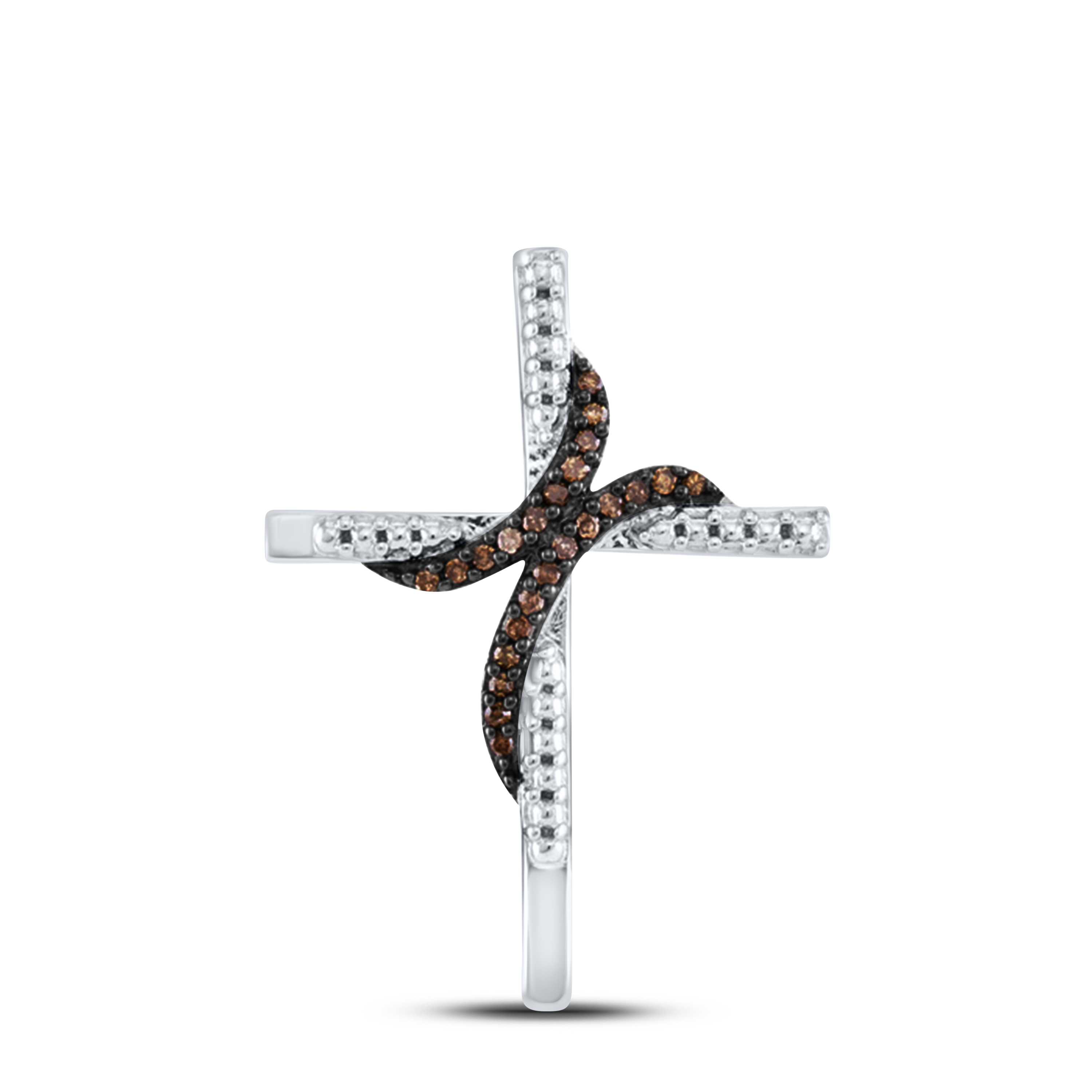 10kt White Gold Womens Round Brown Diamond Cross Beaded Pendant 1/8 Cttw