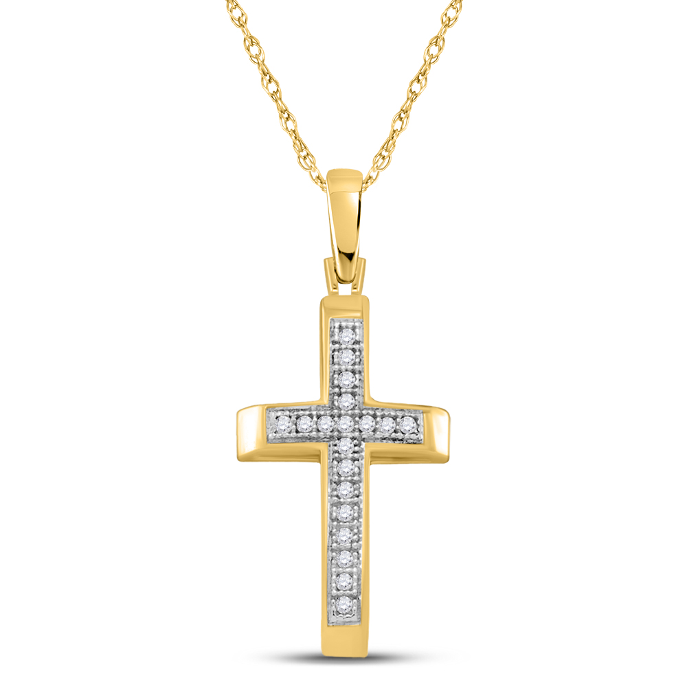 10kt Yellow Gold Womens Round Diamond Cross Faith Pendant 1/20 Cttw