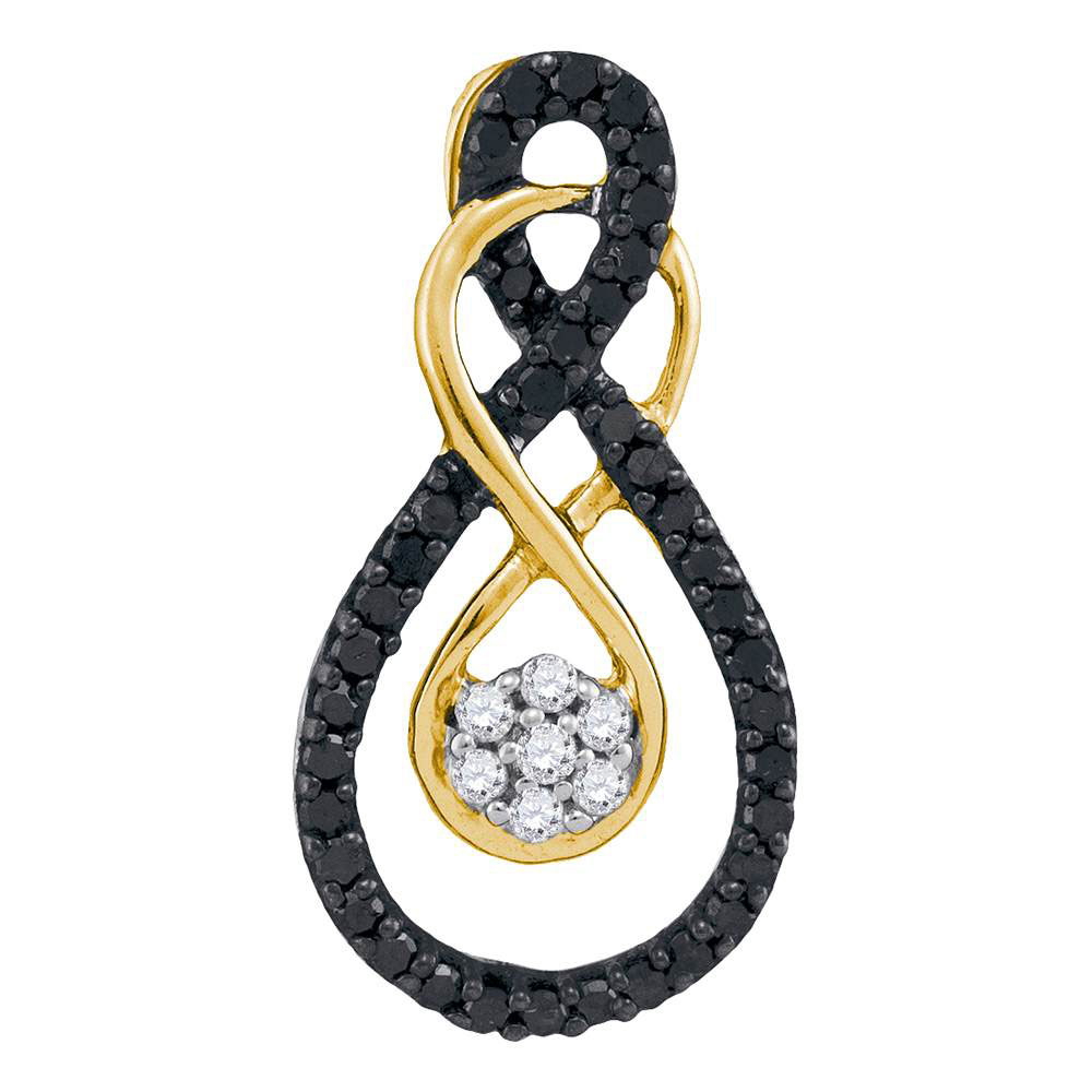• 10kt Yellow Gold Womens Round Black Color Enhanced Diamond Double Infinity Cluster Pendant 1/4 Cttw