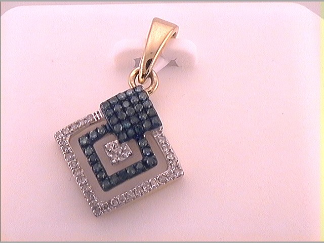 10kt Yellow Gold Womens Color Enhanced Blue Diamond Square Fashion Pendant 1/4 Cttw