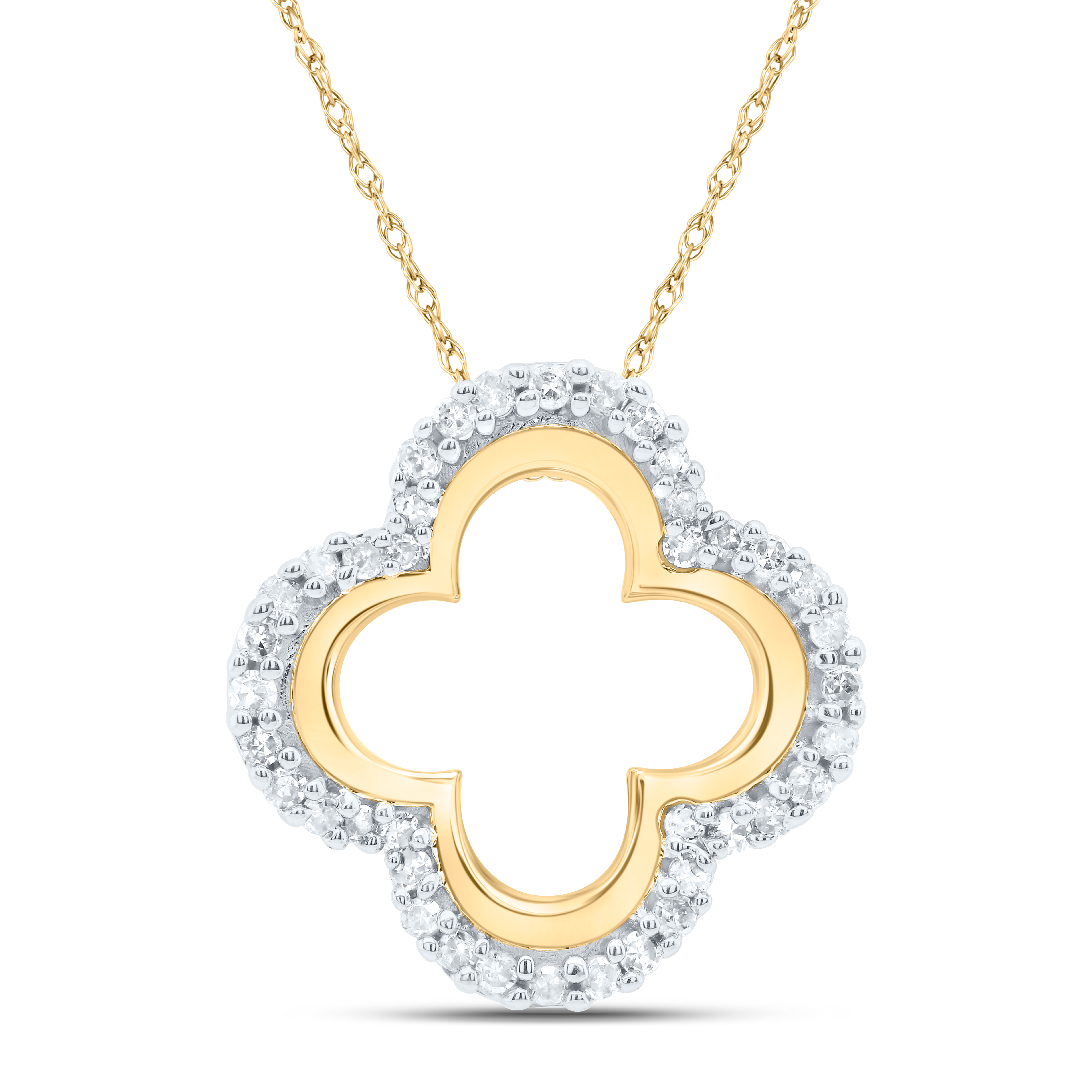10kt Yellow Gold Womens Round Diamond Quatrefoil Cutout Pendant 1/8 Cttw