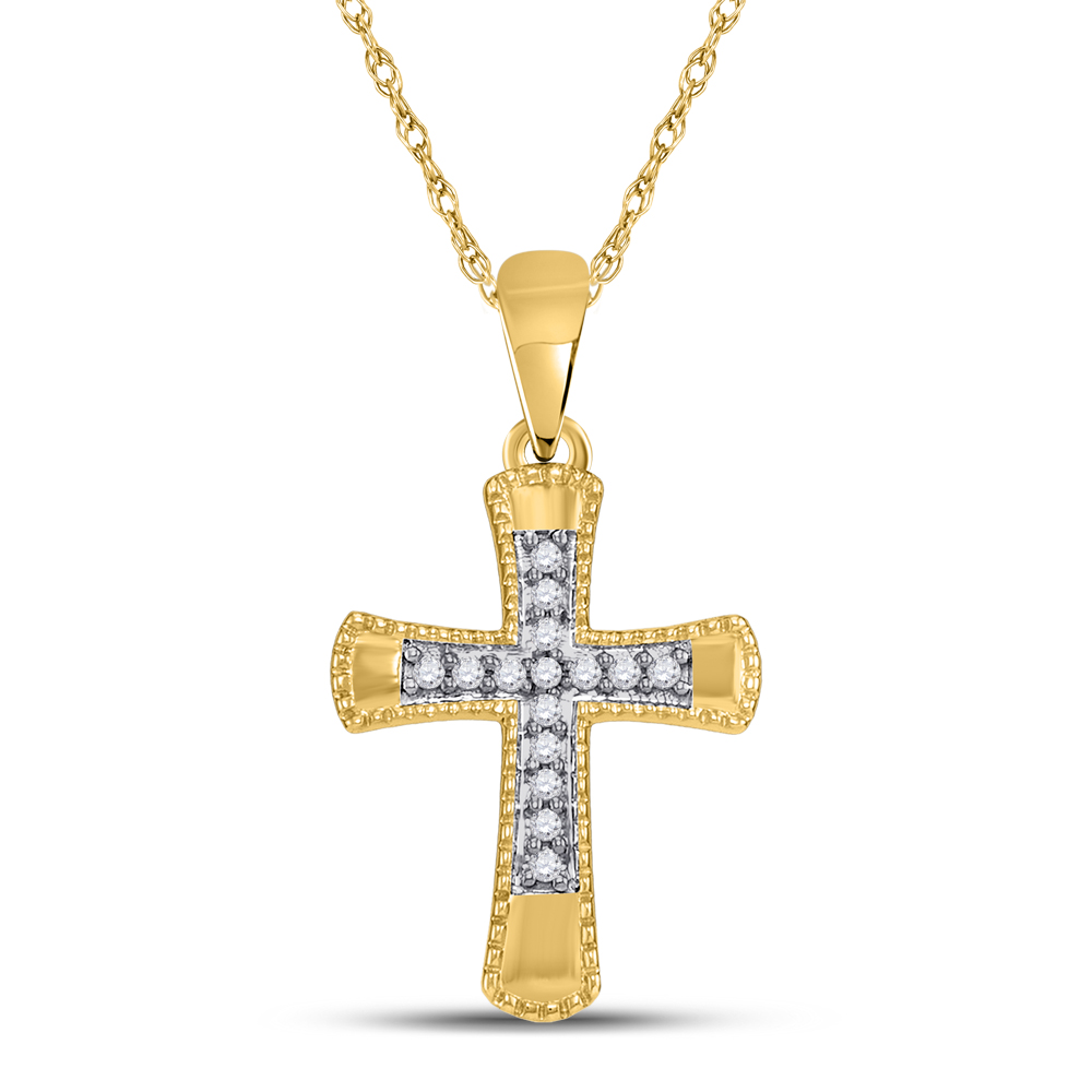 10kt Yellow Gold Womens Round Diamond Small Flared Cross Pendant 1/10 Cttw
