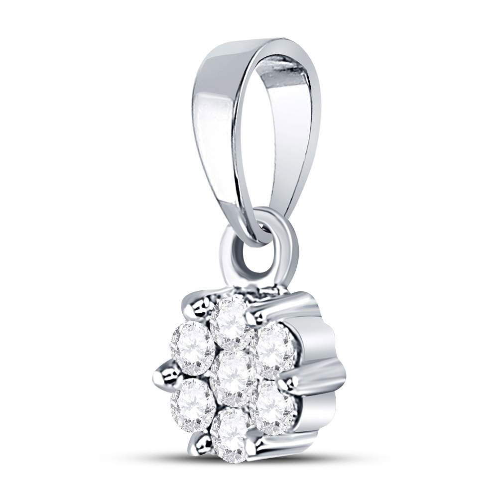 14kt White Gold Womens Round Diamond Flower Cluster Pendant 1/10 Cttw