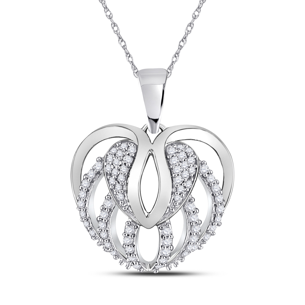 10kt White Gold Womens Round Diamond Open Strand Heart Pendant 1/5 Cttw