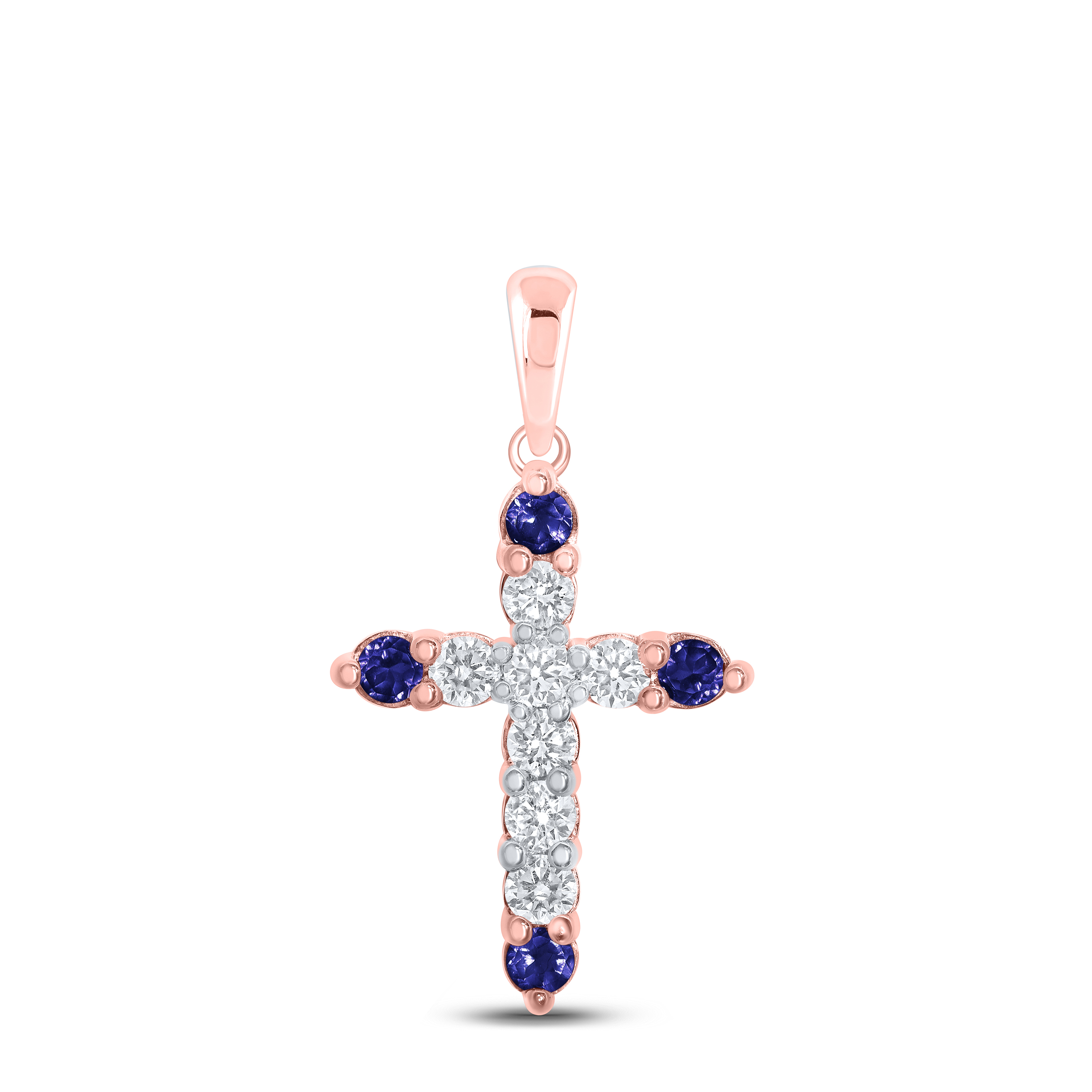 1/6CTW-DIA NK 1/10CT-SAPP NATURAL GEM CROSS PENDANT