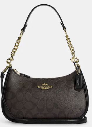 Coach Shoulder Teri Shoulder Bag In Signature Canvas - Gold/Brown Black